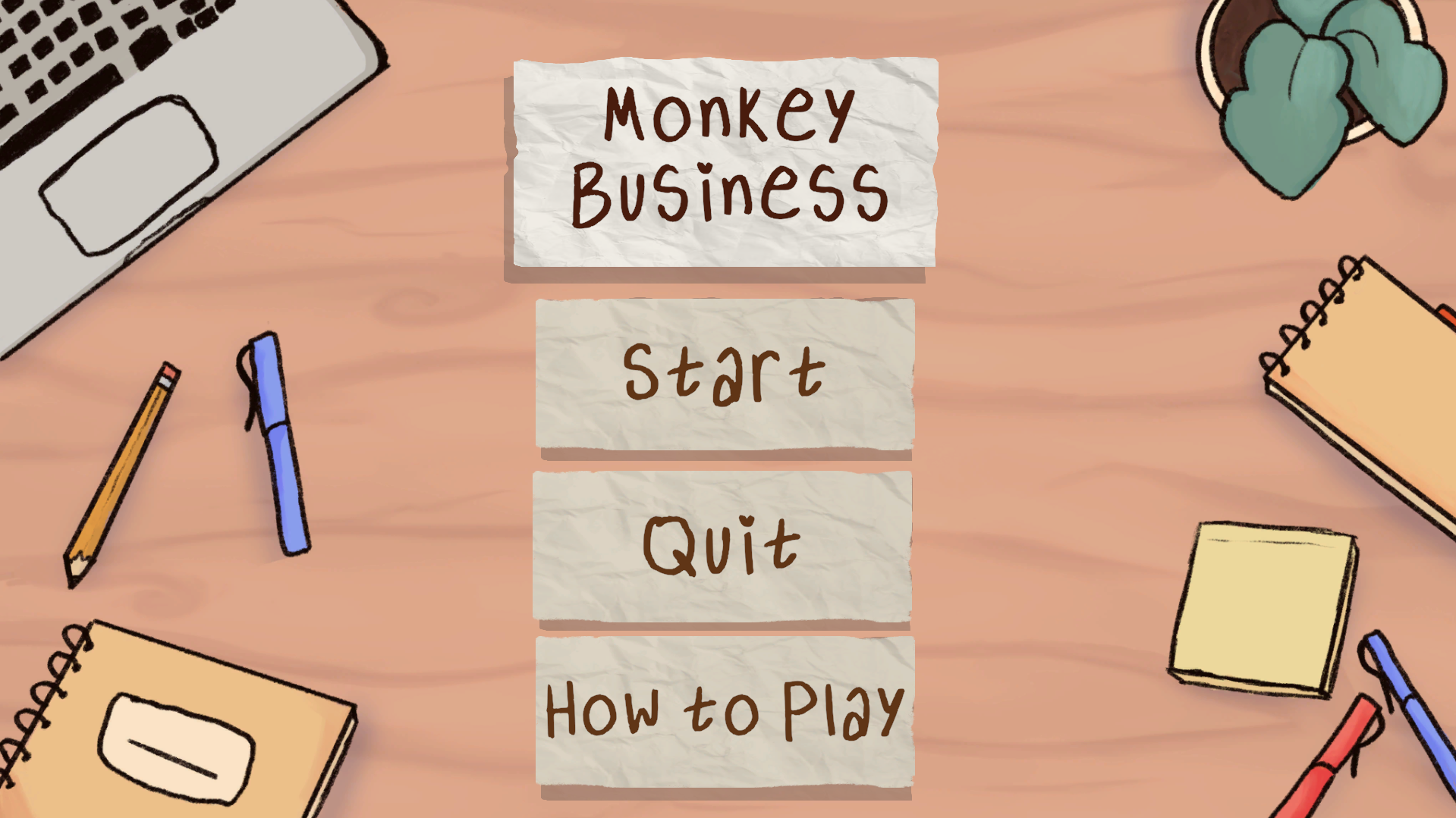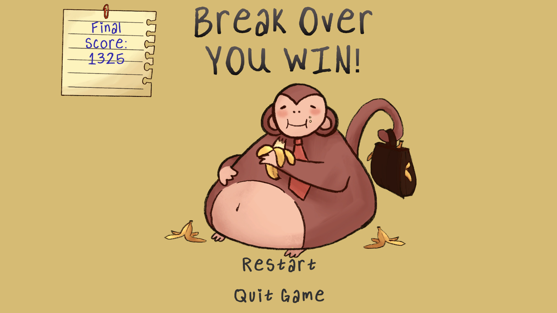 Every thought of what a Monkey working at an office does on break. Well, welcome to monkey business, as you will try to collect as many bananas and food as you can before break time is over. But be careful if you catch too many papers or rotten bannas you will be forced to go back to work early with extra paperwork.